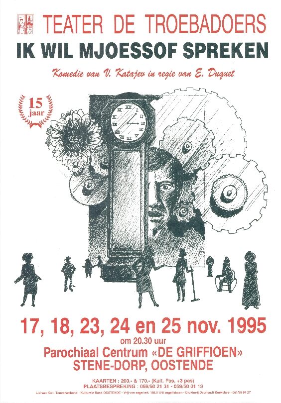 Omschrijving Formaat : 47 x 32 cm. Komedie van V. Katajev in regie van E. Duguet. Trefwoorden TONEELSTUKKEN AFFICHES DE TROEBADOERS (TONEELVERENIGING) DE GRIFFIOEN (PAROCHIEZAAL) KATAJEV VALENTIN (AUTEUR) IK WIL MJOESSOF SPREKEN (TONEELSTUK) DUGUET E. (TONEELREGISSEUR) Plaatskenmerk ZOLDER 301 LKA/14/792/37/1995 Inventarisnummers 2013/1585 11/ 11/ 1995 Vervaardiger Drukkerij Devriendt Collectie Toneel De Troebadoers Print