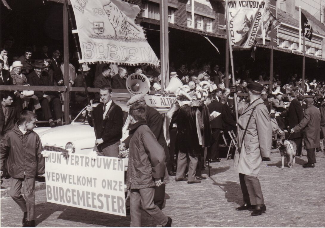 Omschrijving De hondenclub "Mijn Vertrouwen" in een stoet ter huldiging van de Bredense burgemeester. Plaatskenmerk SECR BOX FOTO LUC/S638 Inventarisnummers 2014/3773 1965 Collectie Archief foto Luc Herkomst NOTERMAN GHISLAINE (MEVR. CHATLEN) Vervaardiger Foto Luc (Luc Chatlen) Print