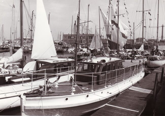 Aangemeerde jachten in het Montgomerydok,rechts de Visserskaai.