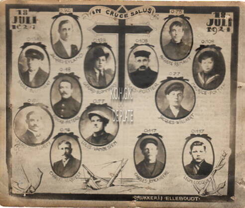 Gedenkt in uw gebeden dezielen van Basiel Blommaert (O.138), Charles Jonckheere (O.117), Charles Verbiest (O.16), Isidoor Pieters (O.18), Julien Poitier (O.108), Jacques Willaert (O.77), Louis Vanbesien (O.77), August Remaut (O.75), Jaak Eyland (O.92), Gerard Maldeghem (O.92), Gerard Blommaert (O.138), Maurice Pottier (O.108) en Leon Locquet (O.117)