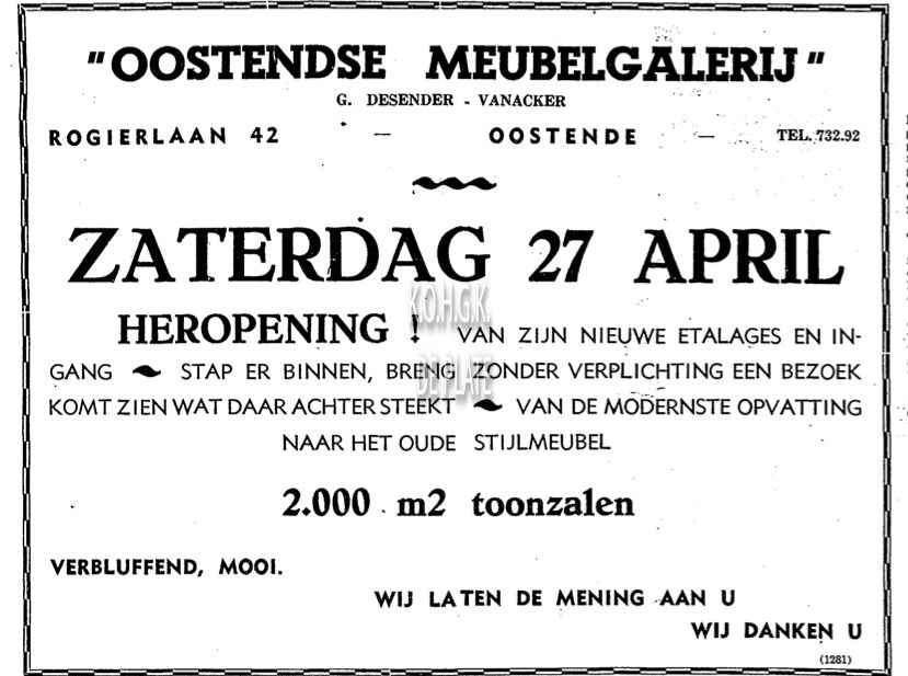 Advertentie : Meubelhuis Raes. Elisabethlaan 332, Oostende