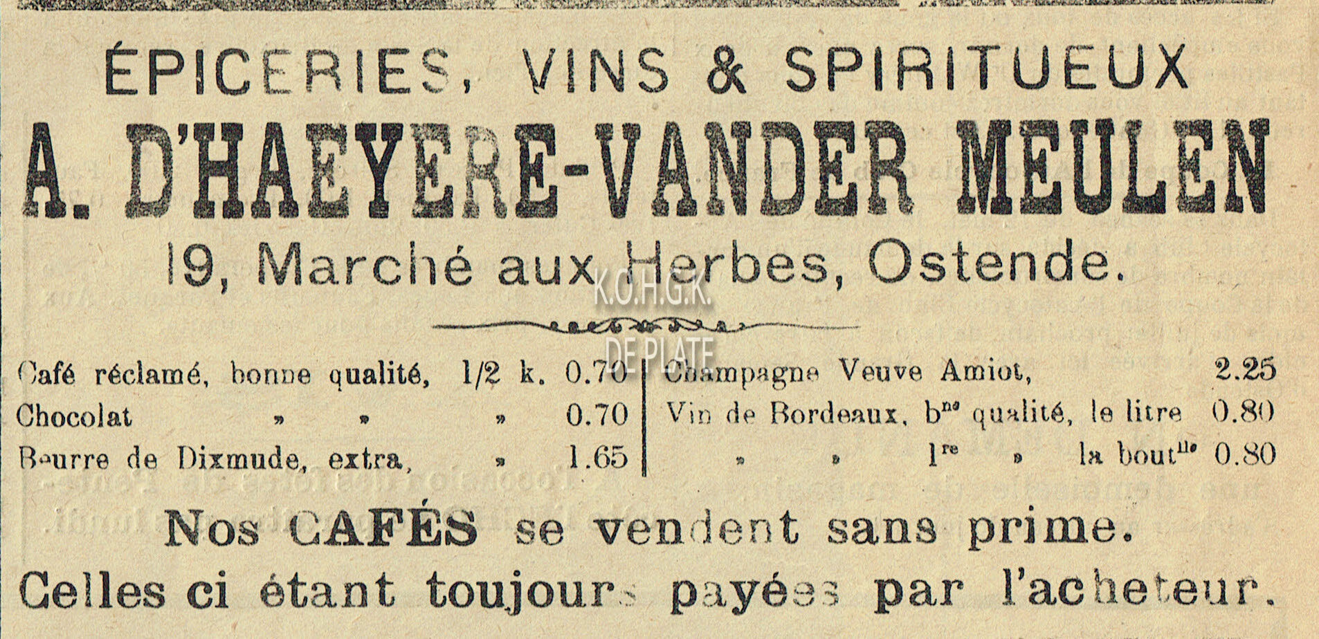 Hebdomadaire indépendant de défense des interêts economiques. Directeur : Henry Van Vyve. Rédaction : 74, rue E. Beernaert, Ostende