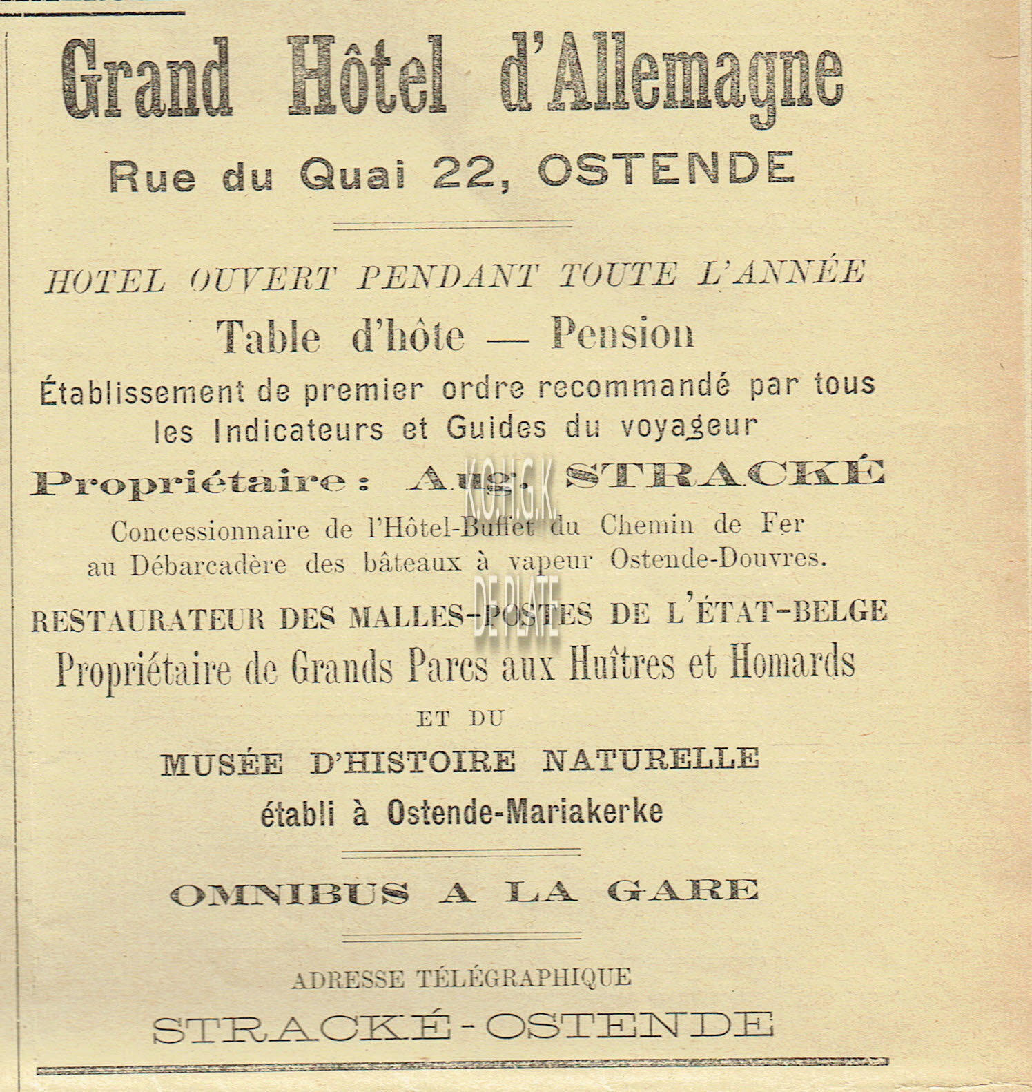 Advertentie : Stichert, Stracké & Cie. Grands Parcs aux Huîtres & Homards. Quai aux Moules