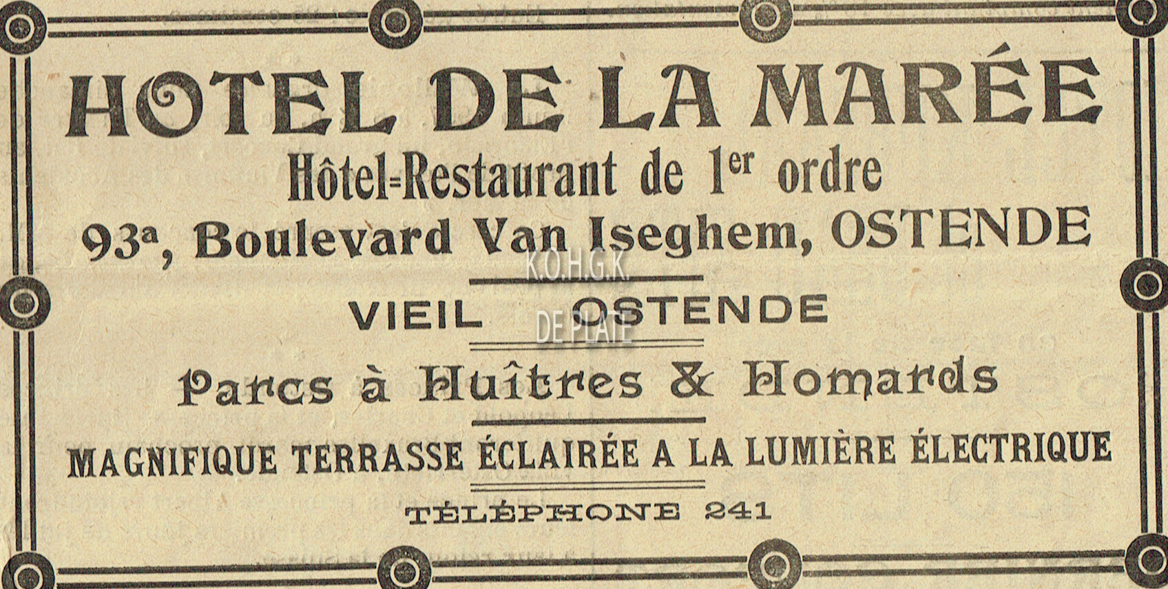 Trefwoorden ADVERTENTIES ; HORECAHOTEL DE LA COURONNEHOTELS (OUDE)DITTE A. (HOTELIER)VINDICTIVELAAN