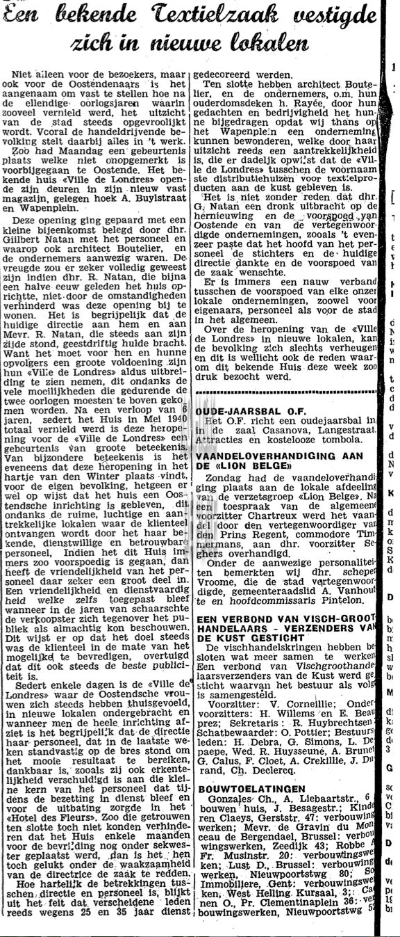 Advertentie : Ville de Londres. Opening nieuwe magazijnen. Hoek Vlaanderenstraat en Wapenplein