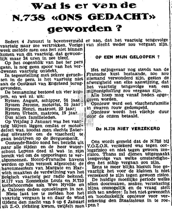 SCHEEPSRAMPENN.738 ONS GEDACHTONS GEDACHT (VISSERSVAARTUIG)SCHEPEN ; ONS GEDACHT (VISSERSVAARTUIG)ZEEVISSERIJ ; NIEUWPOORTRYSSEN AUGUST (1896-1947) (VISSER)RYSSEN URBAIN (1927-1947) (VISSER)RYSSEN JEROME (1897-1947) (VISSER)RYSSEN HENRI (1924-1947) (VISSER)