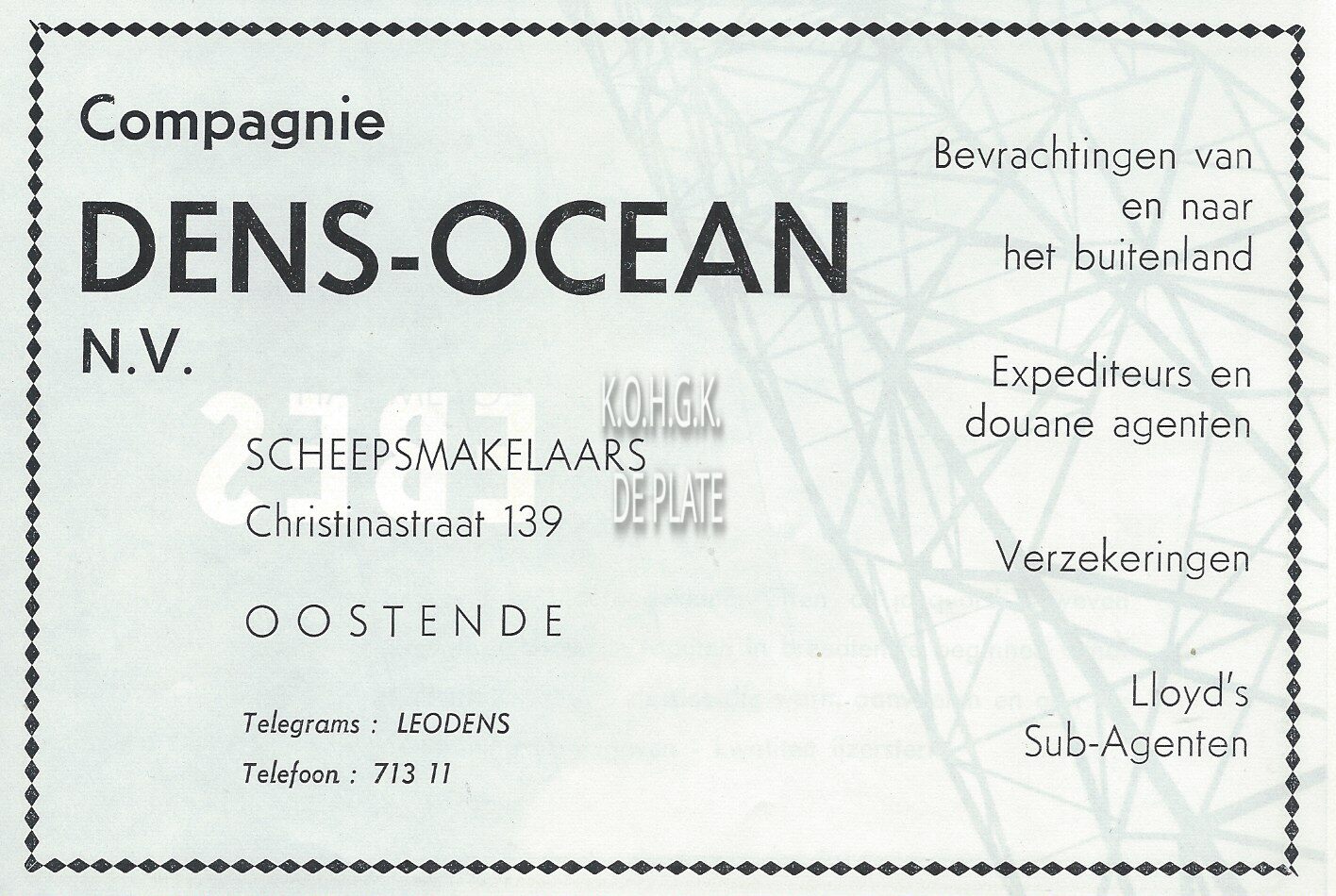 Advertentie : Compagnie Dens-Ocean nv. Scheepsmakelaars. Christinastraat 139, Oostende
