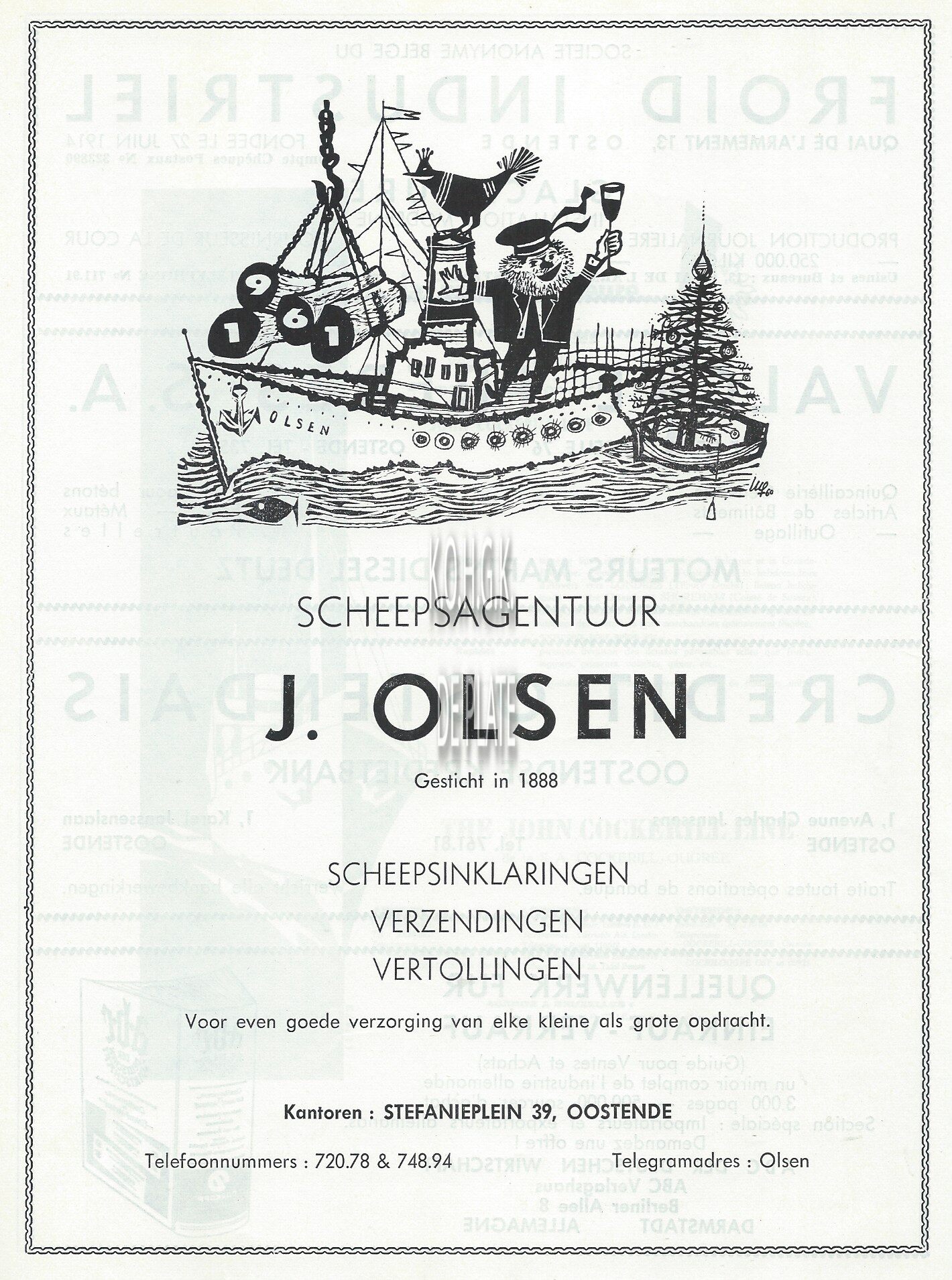 Advertentie : J. Olsen. Scheepsagentuur. Prinses Stefanieplein 39, Oostende