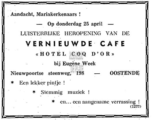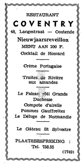 1ste prijs : Roger Baufays uit Brussel. 3de prijs : Gaston Kint (Thermae Palace Hotel) en Roger Lamoot (Hotel Bel Air)