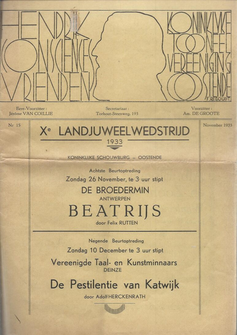 (1) De Broedermin (Antwerpen) met "Beatrijs" door Felix Rutten. (2) Vereenigde Taal- en Kunstminnaars (Deinze) met "De Pestilentie van Katwijk" door Adolf Herckenrath