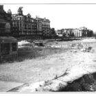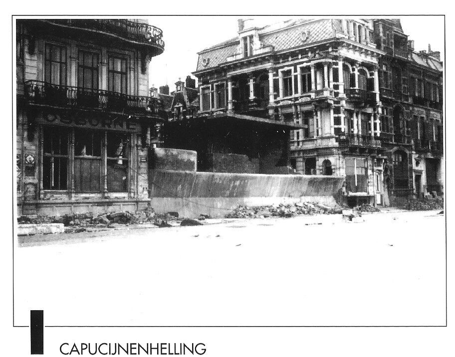 3 foto's : (1) De Albert I-promenade met de hoek van de Kapucijnenstraat ; (2) De Albert I-promenade vanaf de Kursaal richting het Koninklijk Chalet met zicht op het afgebroken "Hotel de la Plage" en (3) Het Zeeheldenplein