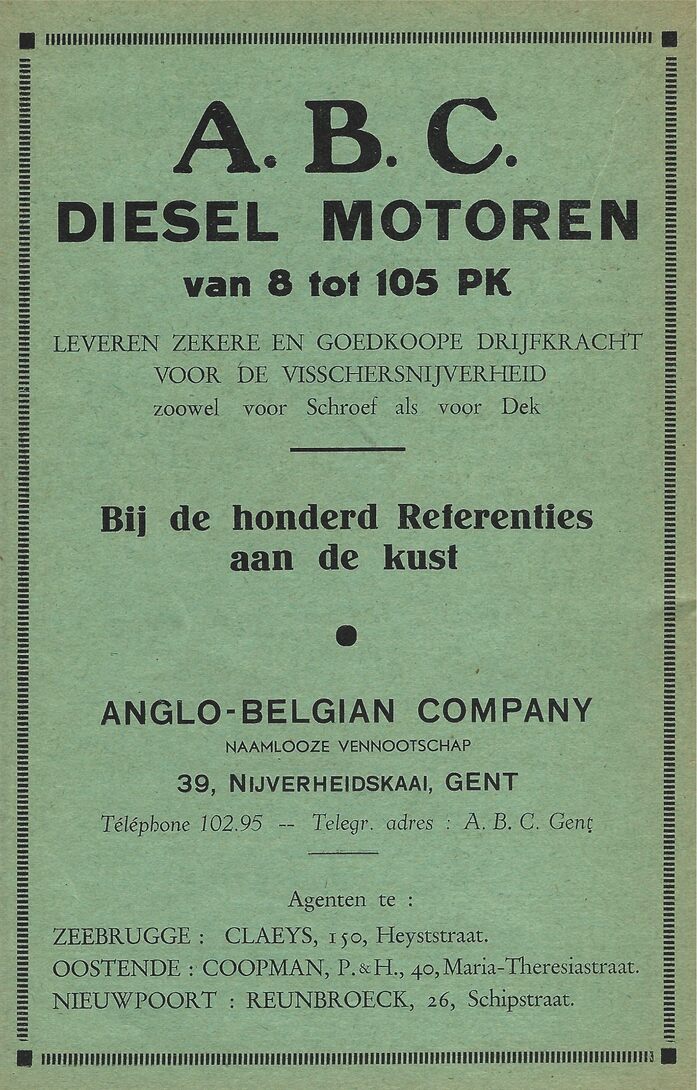 Trefwoorden ADVERTENTIES ; SCHEEPSUITRUSTINGEN SCHEEPSMOTOREN ABC (SCHEEPSMOTOREN) ANGLO BELGIAN CORPORATION (SCHEEPSMOTOREN) (GENT) COOPMAN P. EN H. (AGENT ABC SCHEEPSMOTOREN) Plaatskenmerk B162 Deelbeschrijving uit boek of document Officiëele lijst der visschersvaartuigen met hunne kenteekens 1933 Auteurs Anoniem Pagina [47] Print