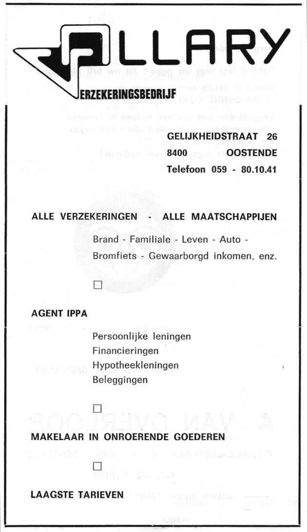Trefwoorden ADVERTENTIES ; HANDEL ALLARY (VERZEKERINGSBEDRIJF) GELIJKHEIDSTRAAT Inventarisnummers 2013/1916 Deelbeschrijving uit boek of document Programma : Vergit da mo 1978 Pagina 4 Print