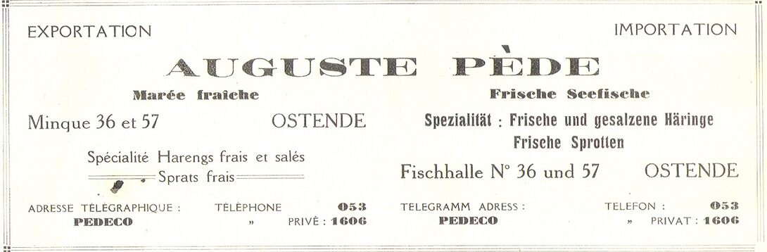 Trefwoorden PEDE AUGUSTE (VISHANDEL) ADVERTENTIES ; VISHANDEL VISMIJN ; BEDRIJVEN HANDEL ; VISHANDEL Plaatskenmerk B517 Inventarisnummers 1996/0390 Deelbeschrijving uit boek of document Oostende 1936 : le port : de haven : the harbour : der Hafen Auteurs Anoniem Pagina 50 Print