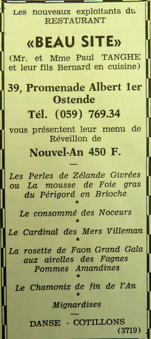 Omschrijving Uitbaters : de heer en mevrouw Paul Tanghe en hun zoon Bernard in de keuken Trefwoorden ADVERTENTIES ; HORECA BEAU SITE (ALBERT I PROMENADE) GASTRONOMIE MENU'S ALBERT I PROMENADE Plaatskenmerk ARCHIEF 117.8 B35 COUR1968 27-12-1968 Auteurs Anoniem Bron Le Courrier du Littoral Pagina's 4 Print