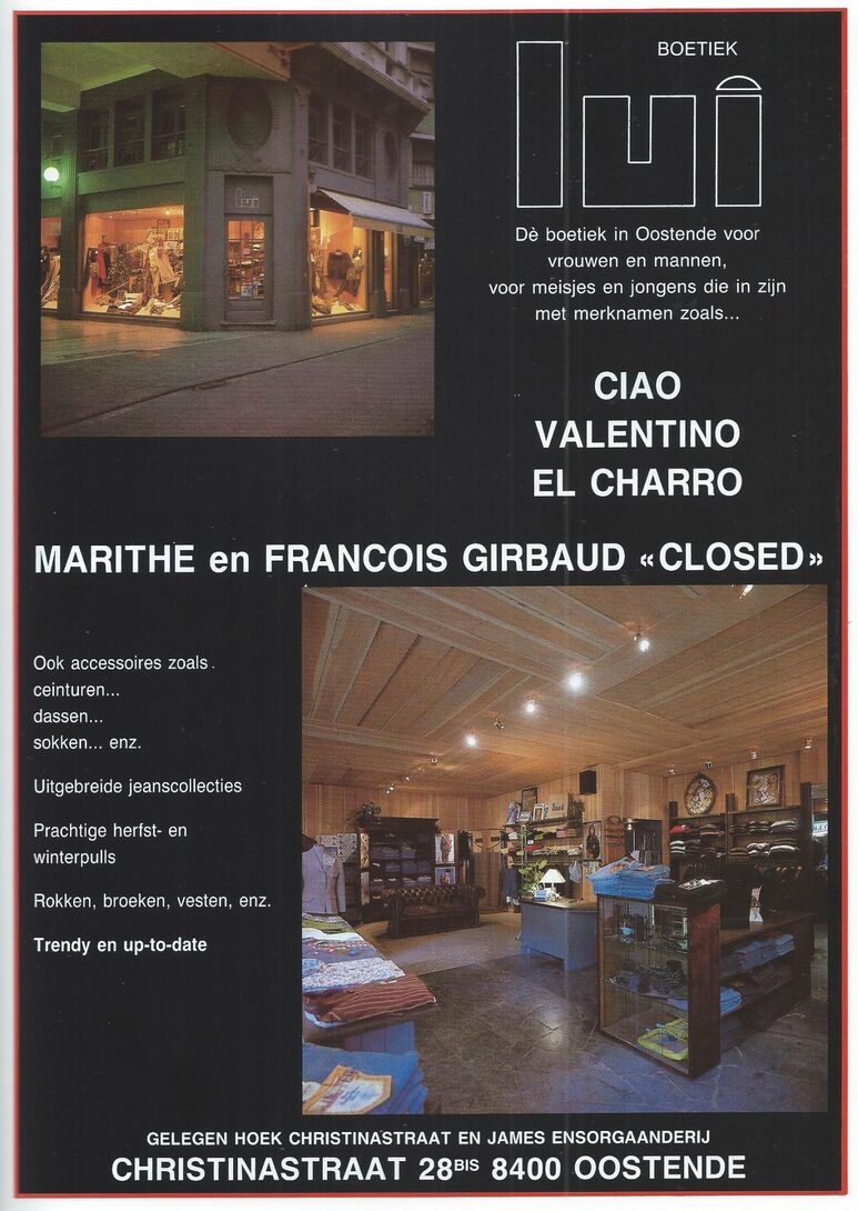 Trefwoorden ADVERTENTIES ; KLEDING BOETIEK LUI (KLEDING) CHRISTINASTRAAT HANDEL ; KLEDING Plaatskenmerk NOOR1989 september oktober november 1989 Volume 7 Nummer 4 Bron Noordzee magazine Pagina's 19 Print