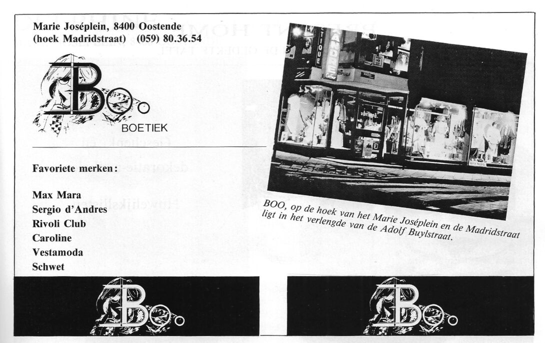 Advertentie : BOO. Boetiek. Marie-Joséplein hoek Madridstraat, Oostende