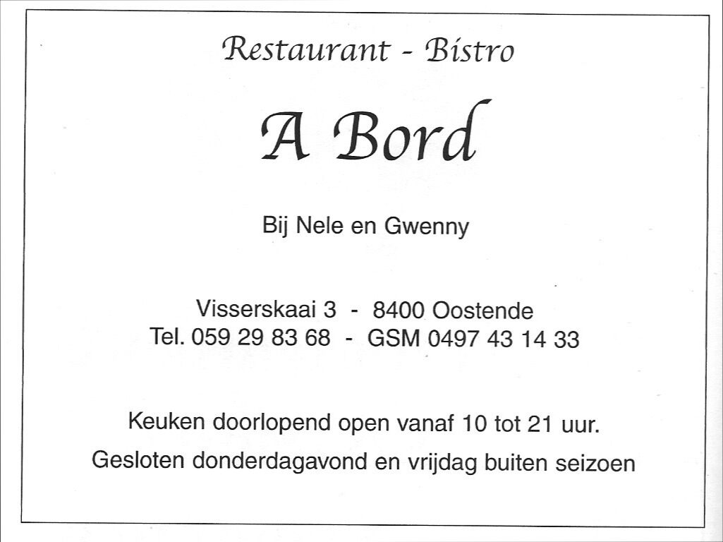 Advertentie : A Bord. Restaurant - Bistro. Visserskaai 3, Oostende