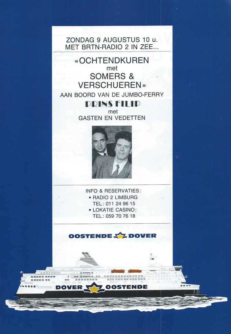 Advertentie : BRTN-Radio 2. Ochtendkuren met Somers & Verschueren. Prins Filip. 09/08/1992