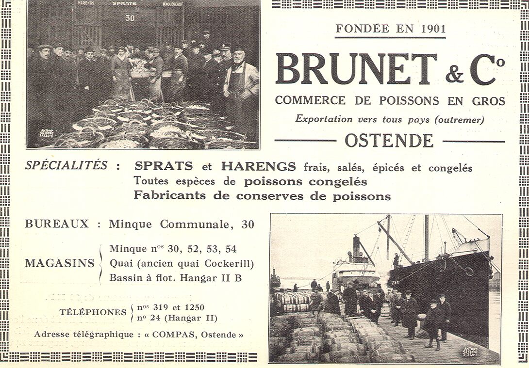Fondée en 1901. Bureaux : Minque Communale 30. Magasins : Minque nos. 30, 52, 53, 54. Quai (ancien quai Cockerill). Bassin à flot. Hangar II B
