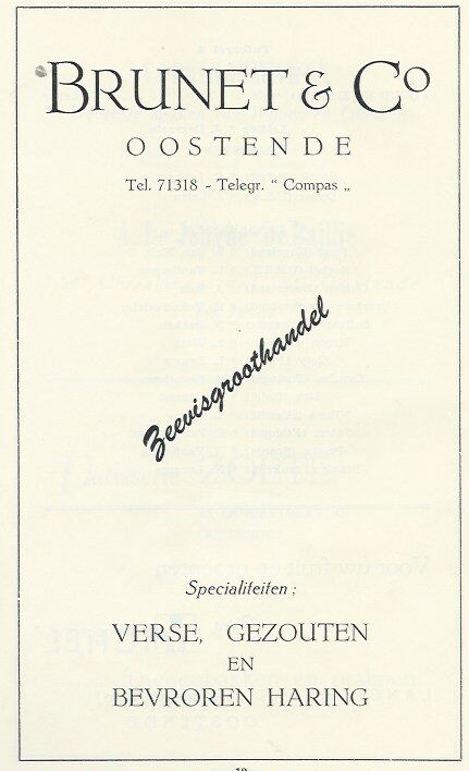 Advertentie : Brunet & C° Oostende. Zeevisgroothandel