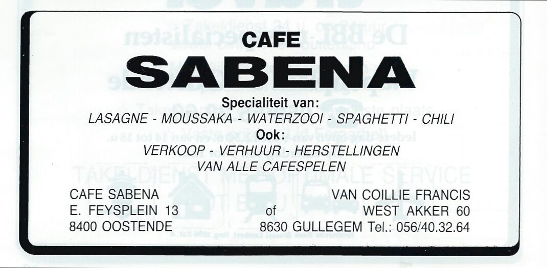 Advertentie : Café SABENA. Ernest Feysplein 13, Oostende