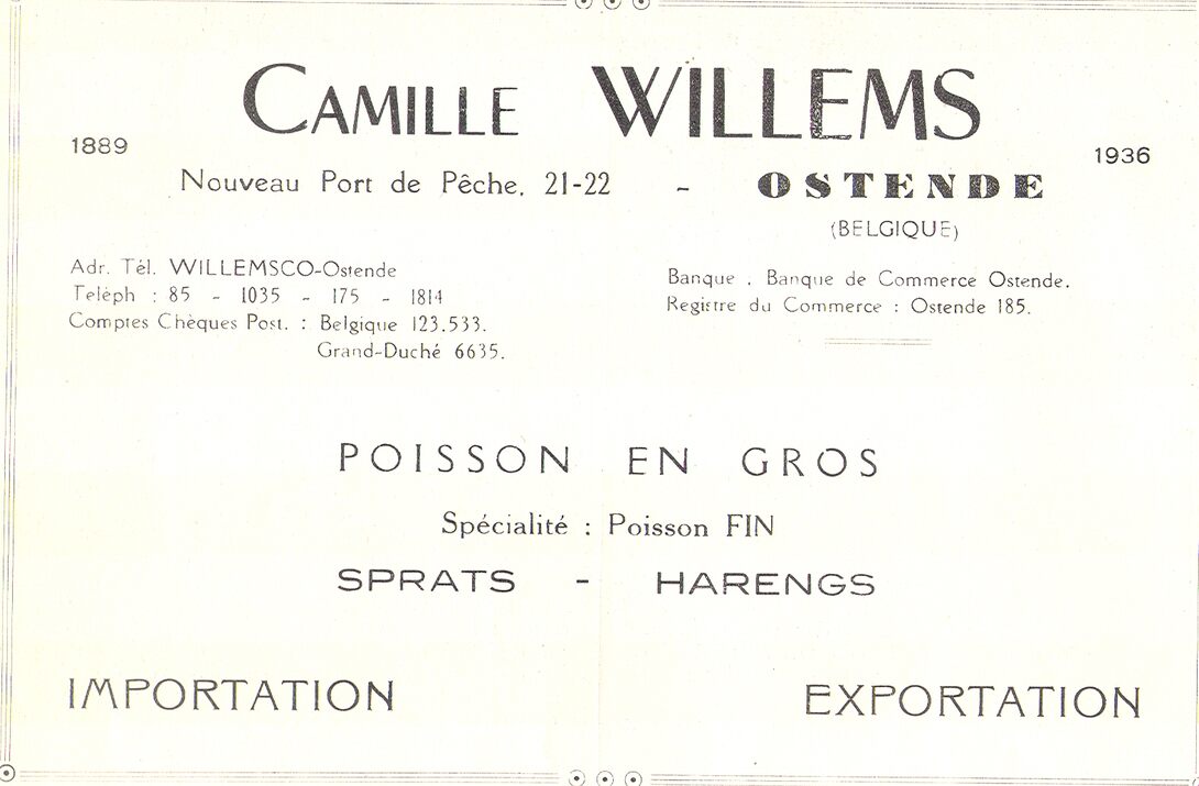 Trefwoorden WILLEMS CAMILLE (VISHANDEL) ADVERTENTIES ; VISHANDEL VISMIJN ; BEDRIJVEN HANDEL ; VISHANDEL Plaatskenmerk B517 Inventarisnummers 1996/0390 Deelbeschrijving uit boek of document Oostende 1936 : le port : de haven : the harbour : der Hafen Auteurs Anoniem Pagina 49 Print