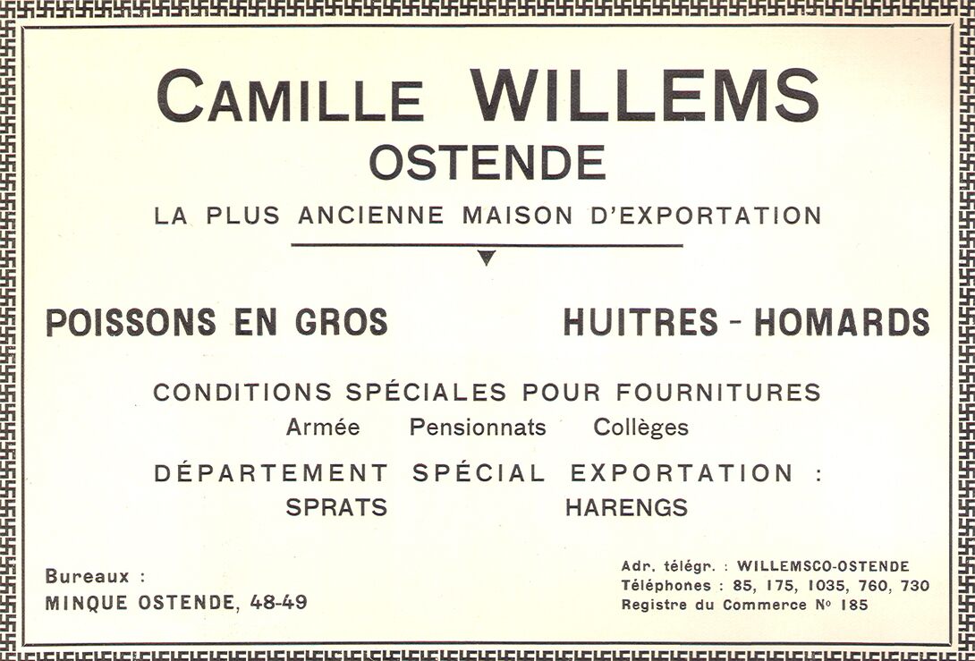 Trefwoorden WILLEMS CAMILLE (VISHANDEL) ADVERTENTIES ; VISHANDEL VISMIJN (1879-1938) (DE CIRK) ; BEDRIJVEN HANDEL ; VISHANDEL Plaatskenmerk A611 Inventarisnummers 2013/0647 Deelbeschrijving uit boek of document Ostende et le Littoral Belge 1932 Auteurs Anoniem Pagina 180 Print