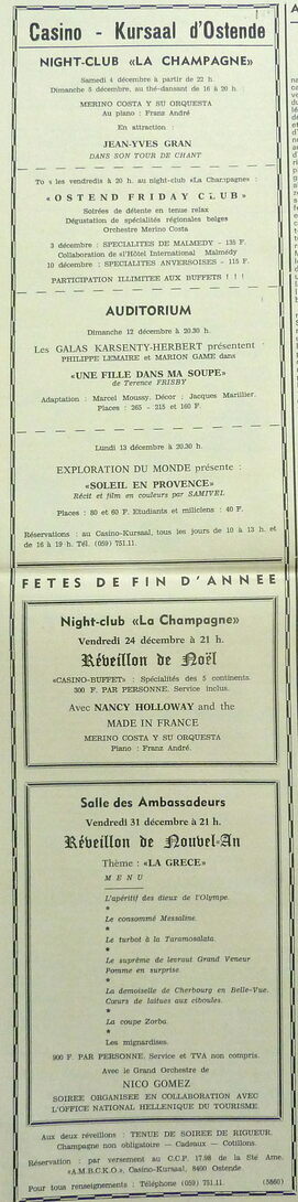 Trefwoorden ADVERTENTIES ; CASINO-KURSAAL CASINO-KURSAAL ; GASTRONOMIE CASINO-KURSAAL ; EVENEMENTEN MENU'S Plaatskenmerk ARCHIEF 117.8 B35 COUR1971 03-12-1971 Auteurs Anoniem Bron Le Courrier du Littoral Pagina's 2 Print