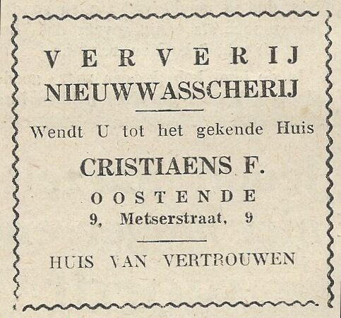 Trefwoorden ADVERTENTIES ; WASSERIJEN EN DROOGKUIS CHRISTIAENS F. (WASSERIJ VERVEN VAN KLEDING) WASSERIJEN EN DROOGKUIS METSELAARSSTRAAT Plaatskenmerk ARCHIEF 117.6 - SEA1946 februari 1946 Volume 1 Nummer 2 Bron De Sea-Scout Pagina's 10 Print