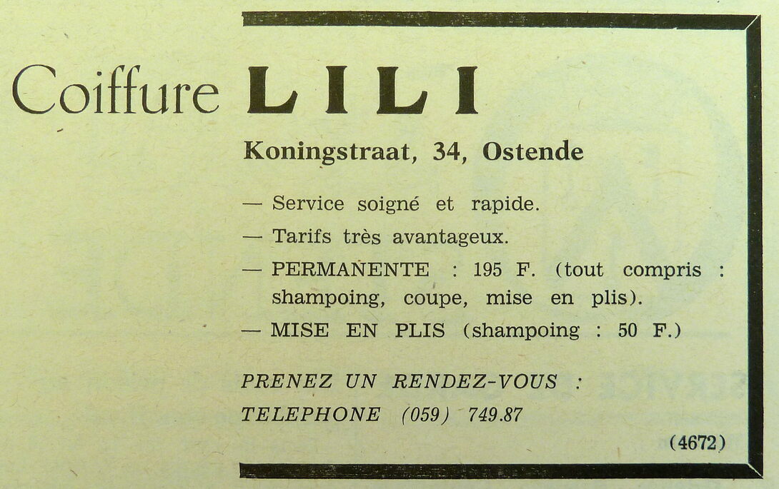 Advertentie : Coiffure LILI. Koningstraat 34, Ostende