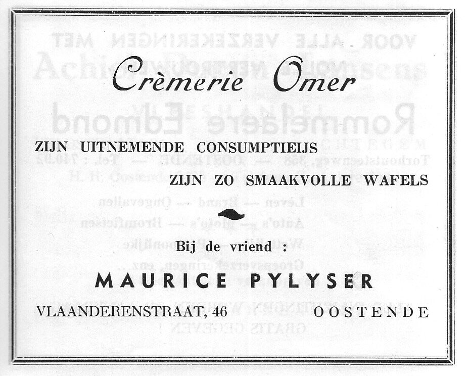 Advertentie : Crèmerie Omer. Maurice Pylyser. Vlaanderenstraat 46, Oostende