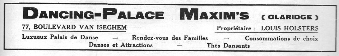 Advertentie : Dancing-Palace Maxim's (Claridge). 77, Boulevard Van Iseghem, Ostende