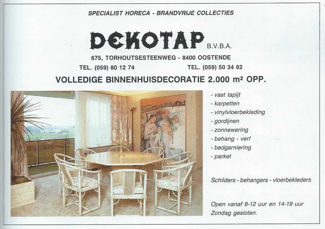 Advertentie : Dekotap. Binnenhuisdecoratie. Torhoutsesteenweg 675, Oostende
