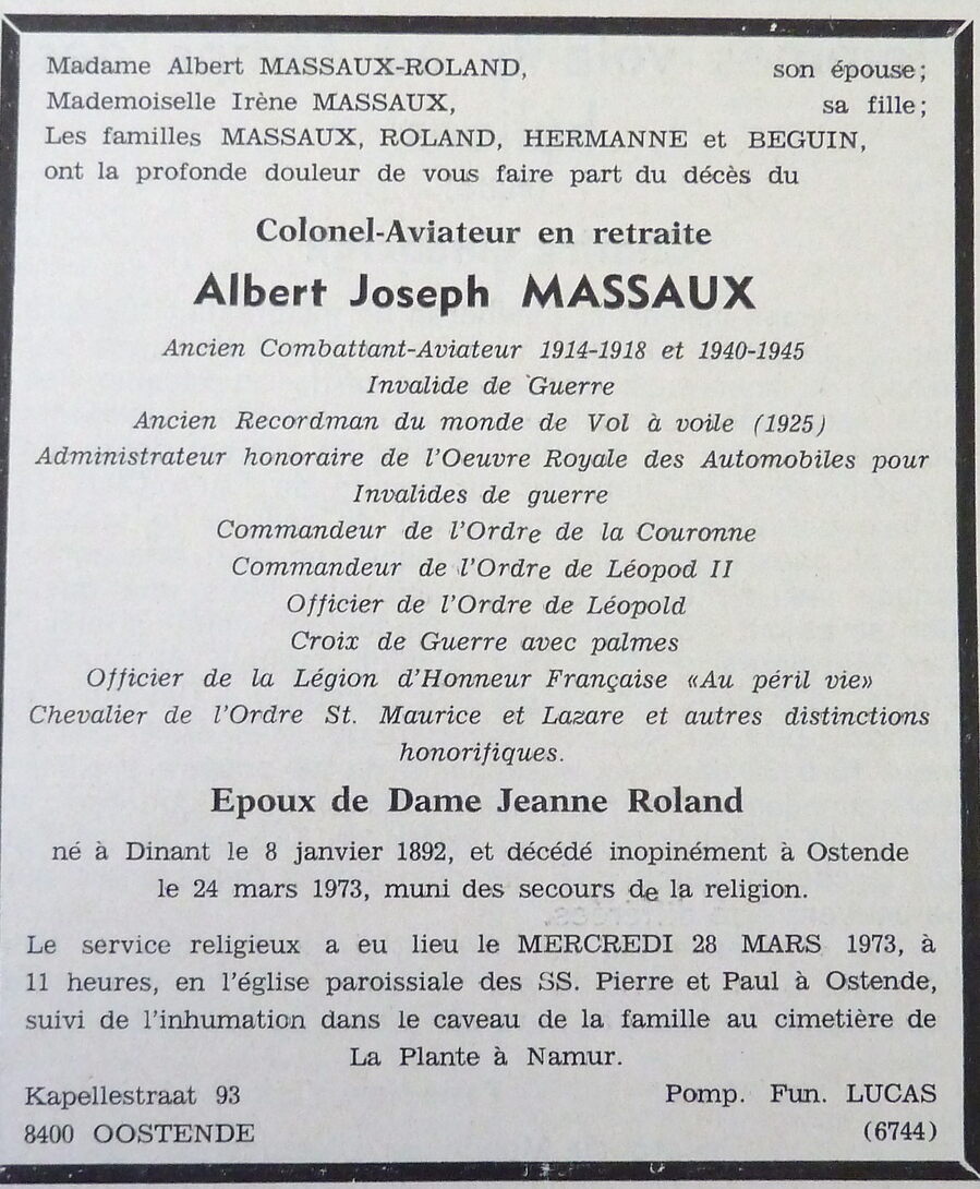 Trefwoorden ADVERTENTIES ; DOODSBERICHTEN MASSAUX ALBERT JOSEPH (1892-1973) (PILOOT) LUCHTVAART ; EERSTE WERELDOORLOG Plaatskenmerk ARCHIEF 117.8 B35 COUR1973 30-03-1973 Auteurs Anoniem Bron Le Courrier du Littoral Pagina's 5 Print