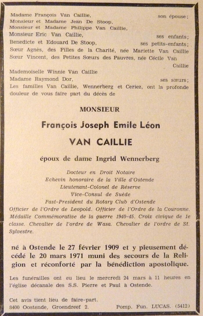 Trefwoorden ADVERTENTIES ; DOODSBERICHTEN VAN CAILLIE FRANCOIS (1909-1971) (NOTARIS POLITICUS) Plaatskenmerk ARCHIEF 117.8 B35 COUR1971 26-03-1971 Auteurs Anoniem Bron Le Courrier du Littoral Pagina's 5 Print
