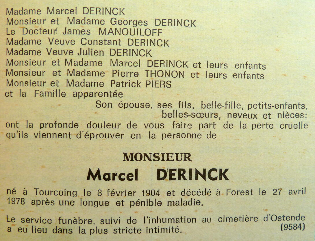 Trefwoorden ADVERTENTIES ; DOODSBERICHTEN DERINCK MARCEL (1904-1978) (RESTAURATEUR) Plaatskenmerk ARCHIEF 117.8 B35 COUR1978 05-05-1978 Bron Le Courrier du Littoral Pagina's 5 Print