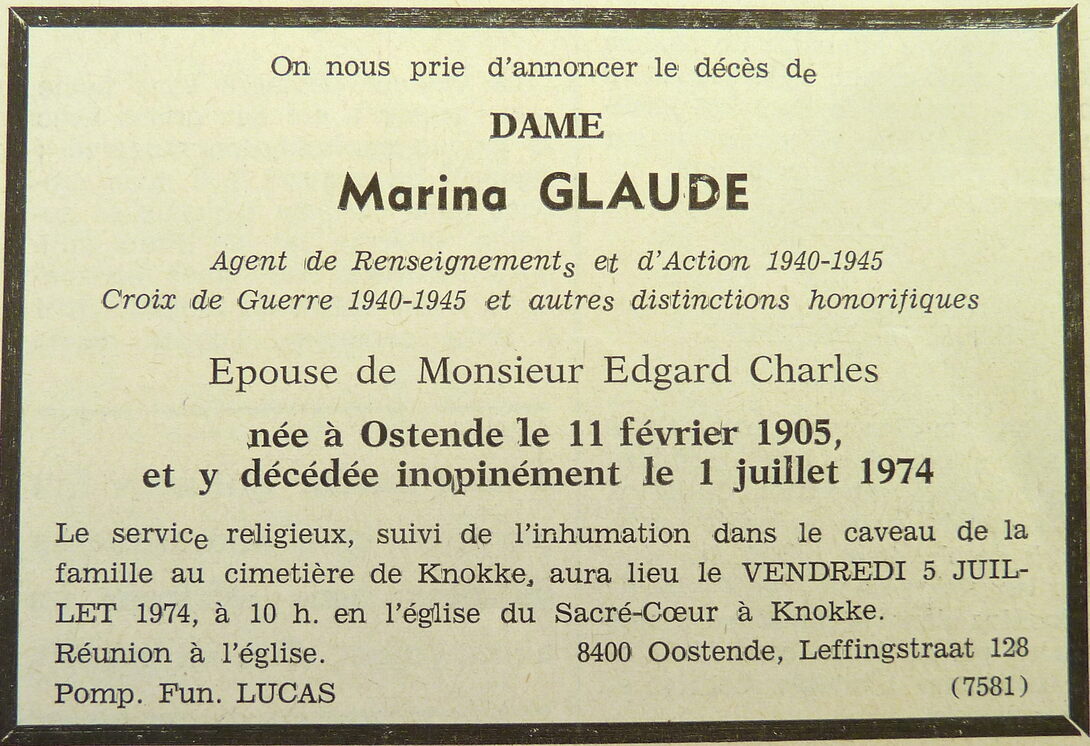 Advertentie : Doodsbericht Marina Glaude