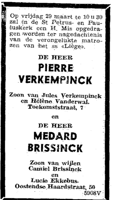 Advertentie : Doodsbericht Pierre Verkempinck en Medard Brissinck