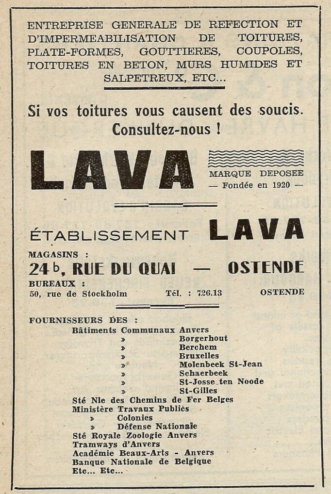 Trefwoorden ADVERTENTIES ; AANNEMERS EN BOUWBEDRIJVEN LAVA (BOUWBEDRIJF) KAAISTRAAT STOCKHOLMSTRAAT NIJVERHEID ; BOUWBEDRIJVEN Plaatskenmerk ARCHIEF 117.6 - BOX3 mai 1938 Volume 5 Nummer 18 Bron Ostende - Thermal Pagina's 3 Print