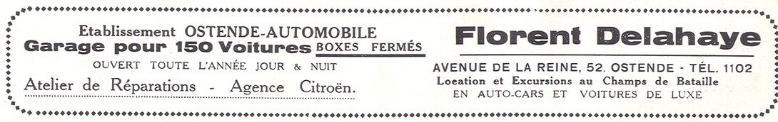 Advertentie : Etablissement Ostende-Automobile Florent Delahaye. Koninginnelaan 52, Oostende