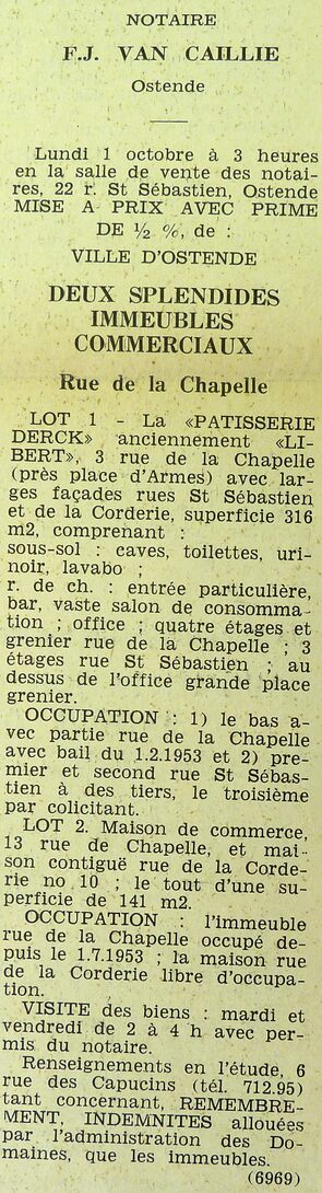Omschrijving "Patisserie Derck" oud huis "Libert" Trefwoorden ADVERTENTIES ; VERKOPINGEN PATISSERIE DERCK KAPELLESTRAAT HANDELSHUIS KAPELLESTRAAT 13 HANDELSZAKEN Plaatskenmerk ARCHIEF 117.8 B35 COUR1962 21-09-1962 Auteurs Anoniem Bron Le Courrier du Littoral Pagina's 10 Print