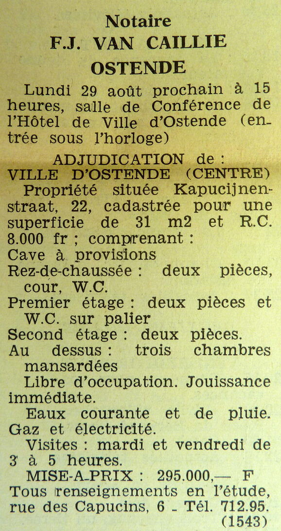 Trefwoorden ADVERTENTIES ; VERKOPINGEN WONING KAPUCIJNENSTRAAT 22 WONINGEN Plaatskenmerk ARCHIEF 117.8 B35 COUR1966 19-08-1966 Auteurs Anoniem Bron Le Courrier du Littoral Pagina's 10 Print