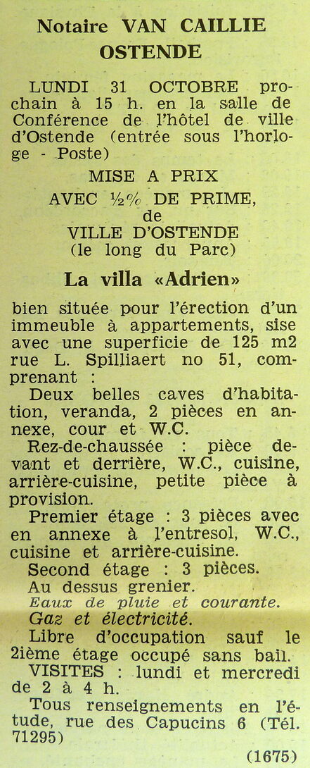 Trefwoorden ADVERTENTIES ; VERKOPINGEN VILLA ADRIEN VILLA'S VILLA ADRIEN SPILLIAERTSTRAAT 51 Plaatskenmerk ARCHIEF 117.8 B35 COUR1966 21-10-1966 Auteurs Anoniem Bron Le Courrier du Littoral Pagina's 10 Print