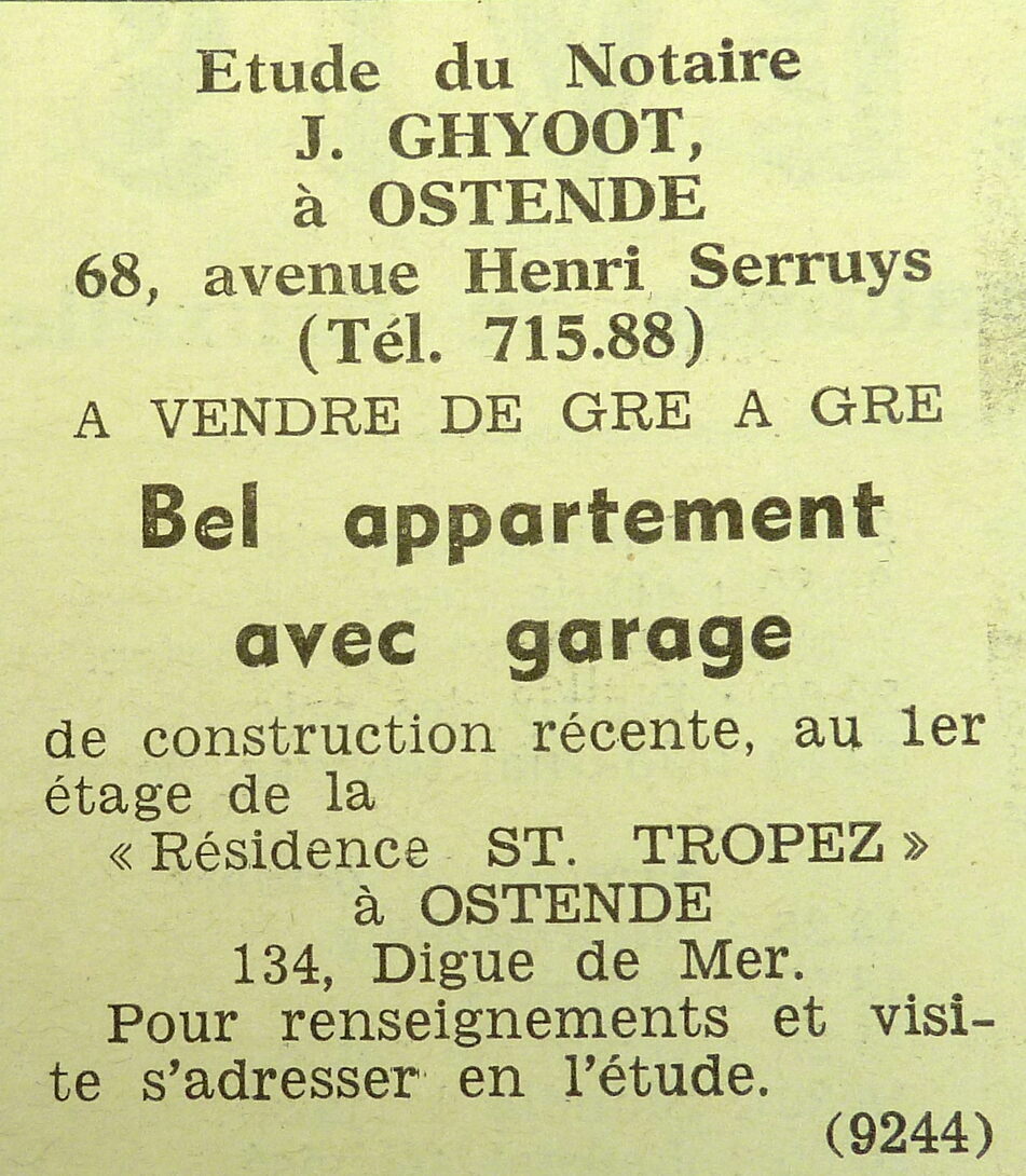 Omschrijving Vente de gré à gré = onderhandse verkoop Trefwoorden ADVERTENTIES ; VERKOPINGEN APPARTEMENT ZEEDIJK 134 RESIDENTIE SAINT TROPEZ APPARTEMENTEN Plaatskenmerk ARCHIEF 117.8 B35 COUR1965 29-10-1965 Auteurs Anoniem Bron Le Courrier du Littoral Pagina's 12 Print