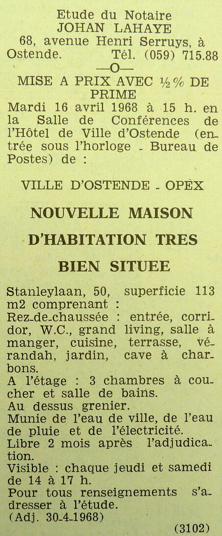 Trefwoorden ADVERTENTIES ; VERKOPINGEN WONING STANLEYLAAN 50 WONINGEN Plaatskenmerk ARCHIEF 117.8 B35 COUR1968 05-04-1968 Auteurs Anoniem Bron Le Courrier du Littoral Pagina's 10 Print