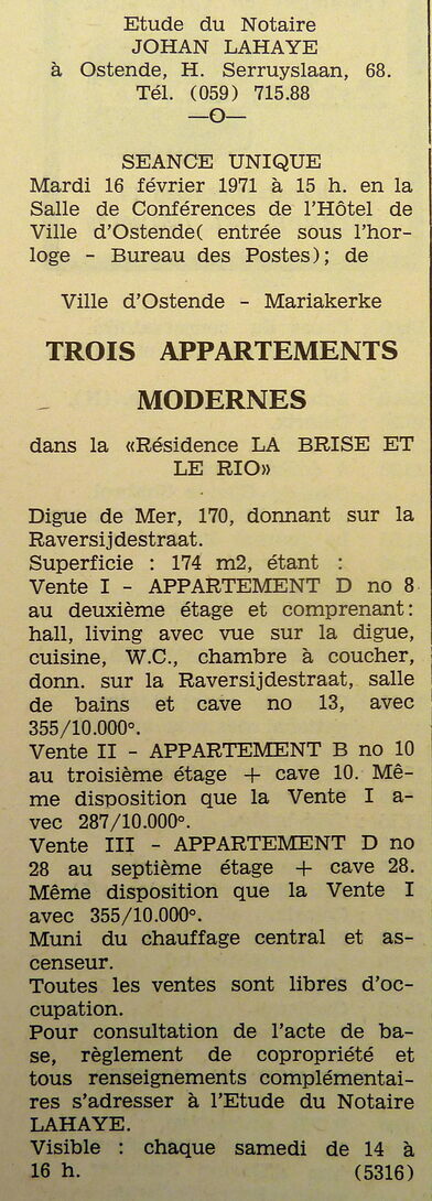 Trefwoorden ADVERTENTIES ; VERKOPINGEN APPARTEMENT ZEEDIJK 170 RESIDENTIE LA BRISE ET LE RIO APPARTEMENTEN Plaatskenmerk ARCHIEF 117.8 B35 COUR1971 29-01-1971 Auteurs Anoniem Bron Le Courrier du Littoral Pagina's 10 Print