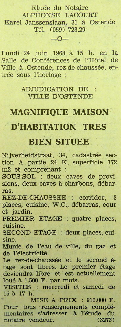 Trefwoorden ADVERTENTIES ; VERKOPINGEN WONING NIJVERHEIDSTRAAT 34 WONINGEN Plaatskenmerk ARCHIEF 117.8 B35 COUR1968 14-06-1968 Auteurs Anoniem Bron Le Courrier du Littoral Pagina's 10 Print