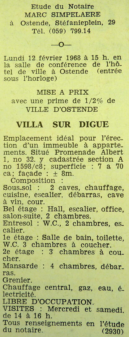 Trefwoorden ADVERTENTIES ; VERKOPINGEN VILLA ALBERT I PROMENADE 32 VILLA'S Plaatskenmerk ARCHIEF 117.8 B35 COUR1968 02-02-1968 Auteurs Anoniem Bron Le Courrier du Littoral Pagina's 10 Print