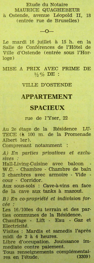 Trefwoorden ADVERTENTIES ; VERKOPINGEN APPARTEMENT IJZERSTRAAT 22 RESIDENTIE LUTECE APPARTEMENTEN Plaatskenmerk ARCHIEF 117.8 B35 COUR1968 28-06-1968 Auteurs Anoniem Bron Le Courrier du Littoral Pagina's 10 Print